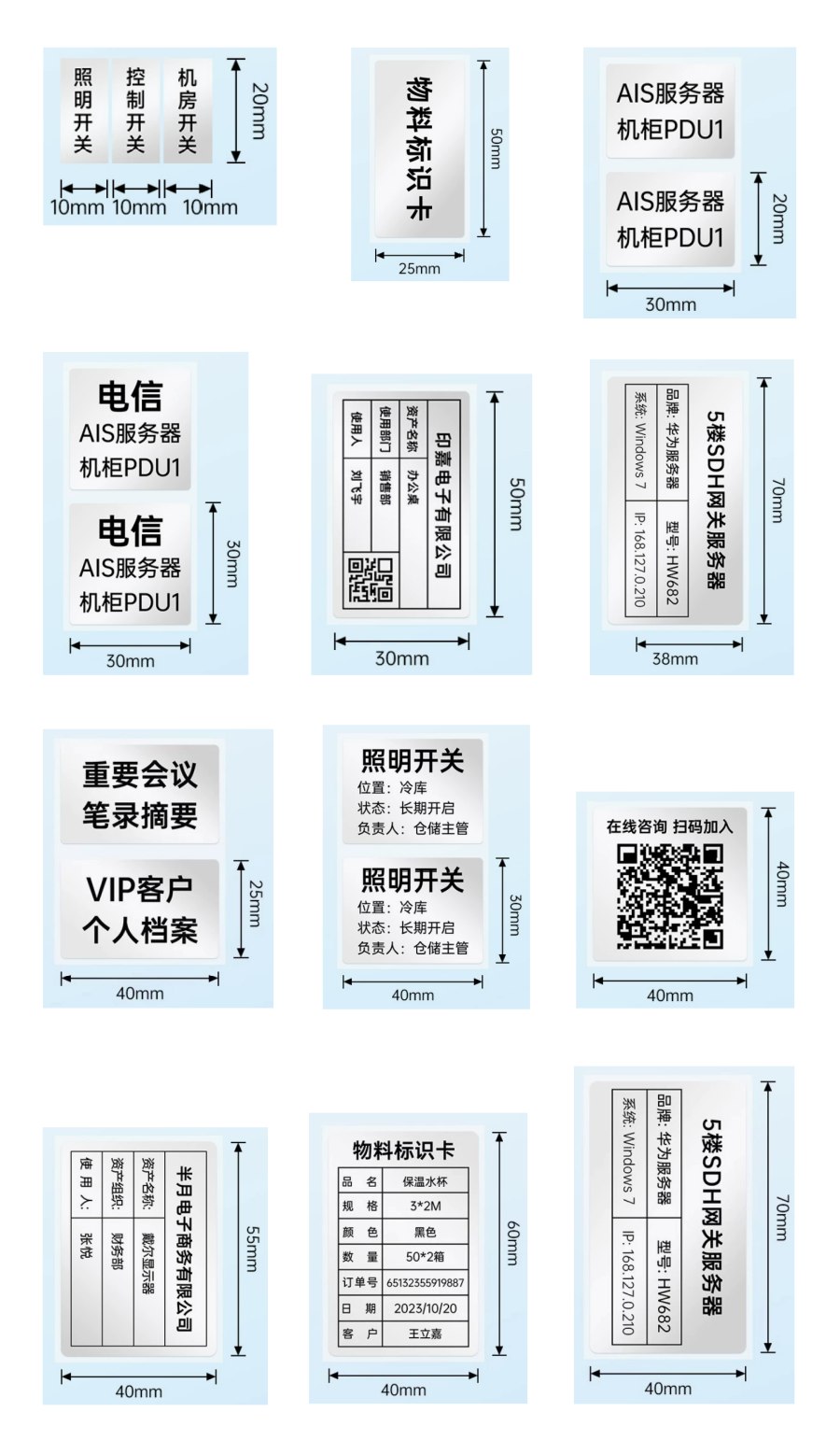 Integrated label cartridge with various sizes and colors