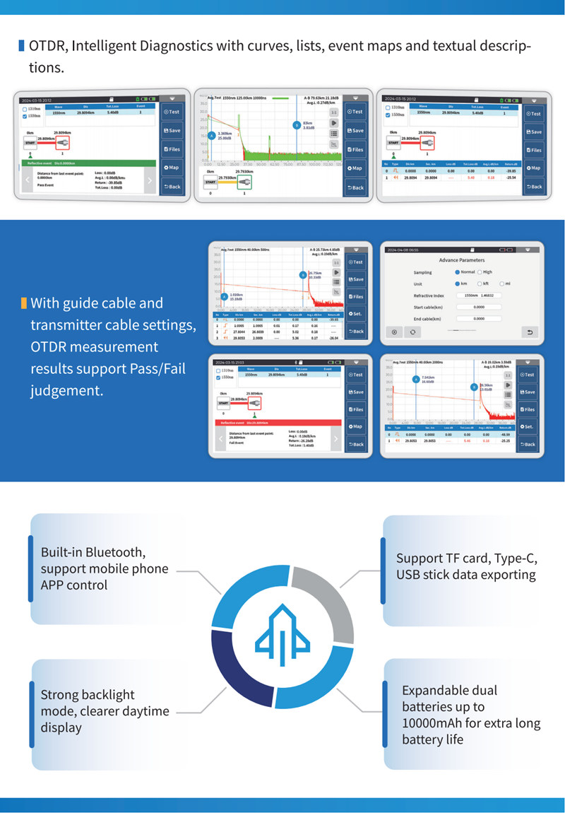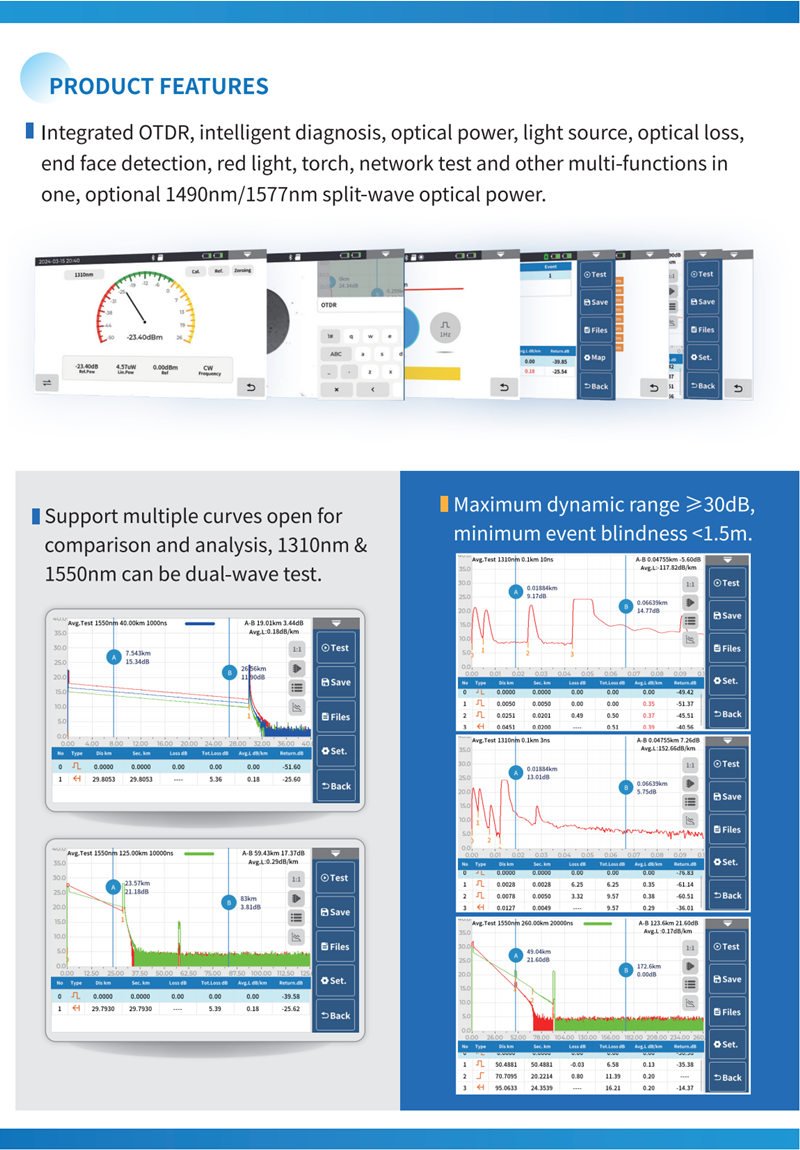 Wavelength 1310/1550/1625nm, Dynamic Range 26/24/24dB