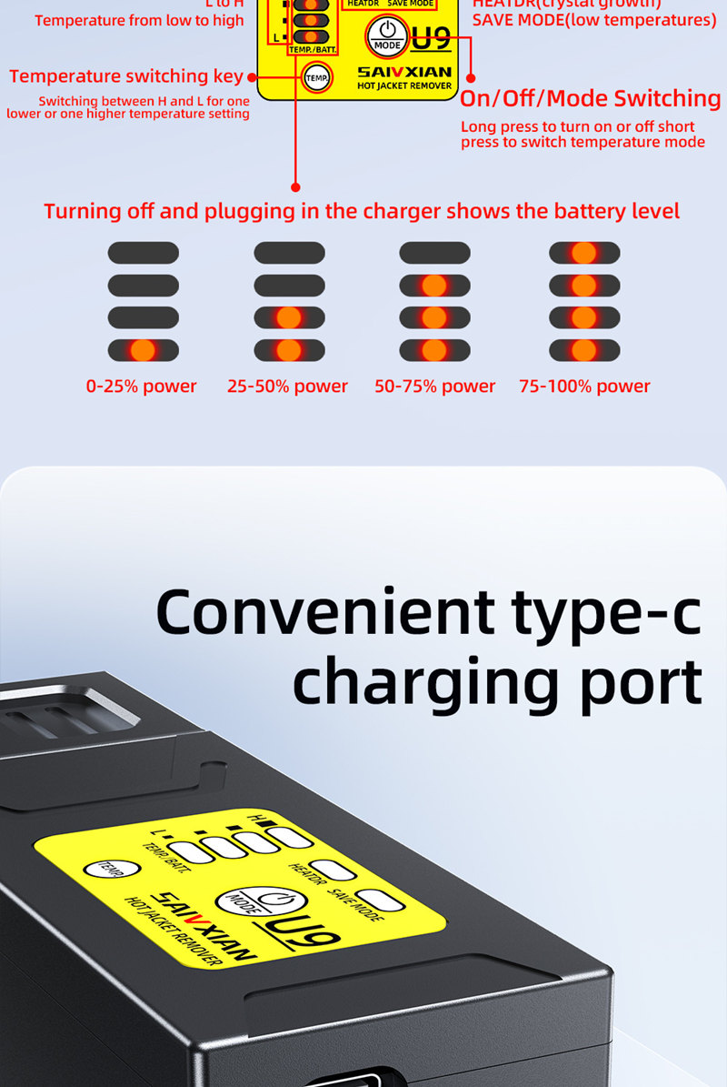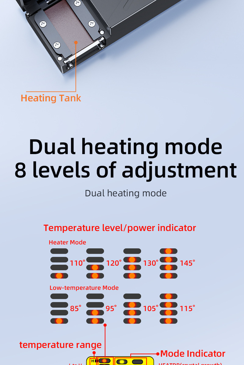 Heating Temperature: Save Mode 85/95/105/115¡æ£¬Heater Mode 110/120/130/145¡æ